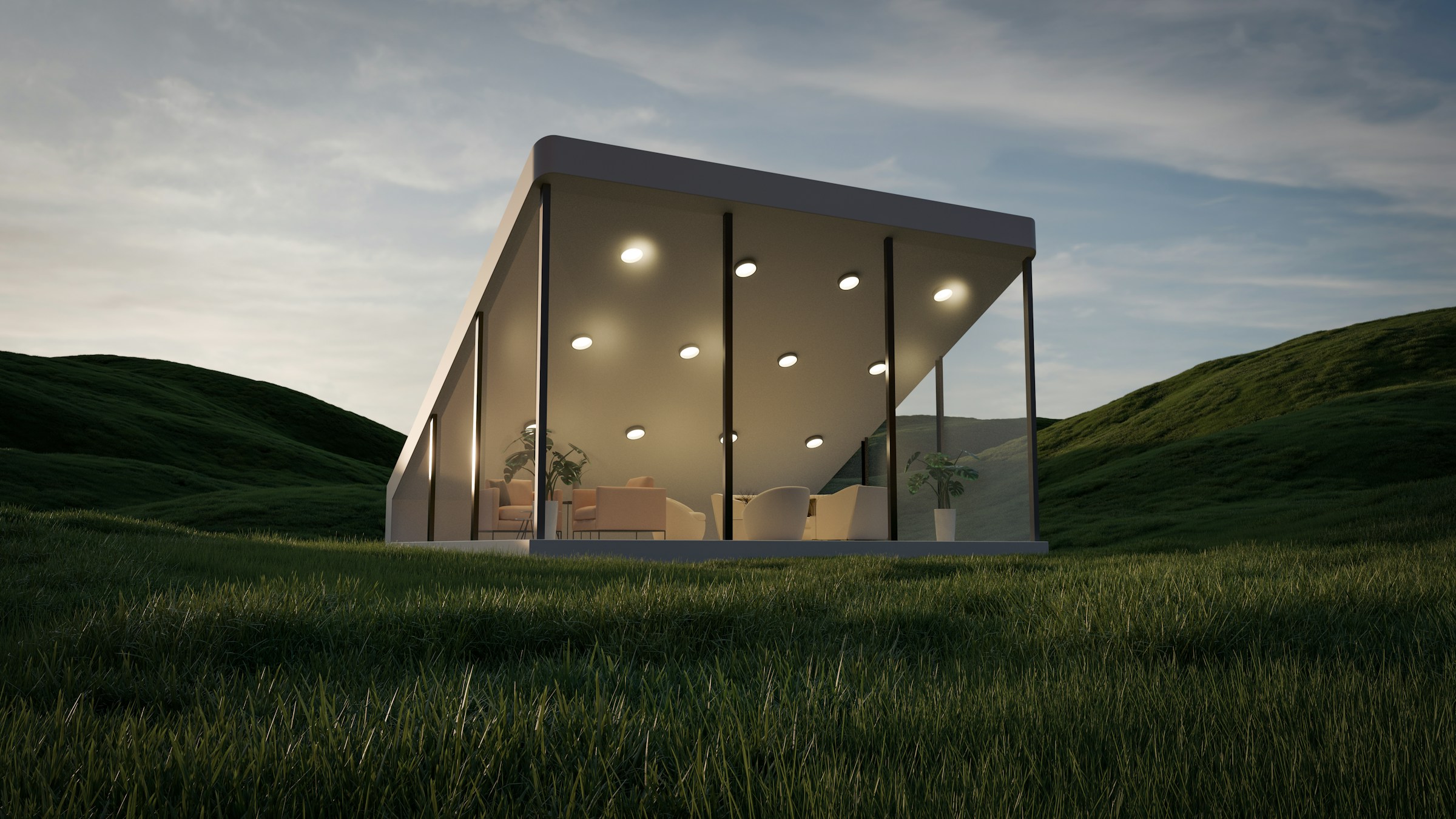 A sleek pavilion of pure transparency, openness and light, designed to dissolve into its environment.